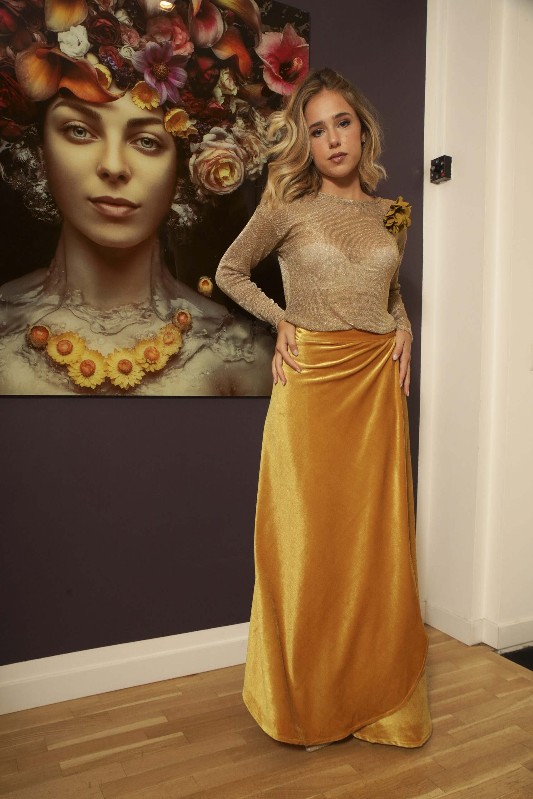 Yellow Ochre Velvet Pareo Skirt, Available in Various Colors on Request
